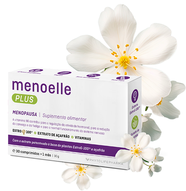 Os efeitos da menopausa podem evidenciar-se de muitas e diferentes formas. Muitas mulheres manifestam sintomas como afrontamentos, aumento de peso, dores musculares e articulares e/ou secura vaginal. Nestes casos a suplementação fitoterapêutica com menoelle® comprimidos, com o ingrediente ativo e eficaz EstroG-100®, poderá estar recomendada.